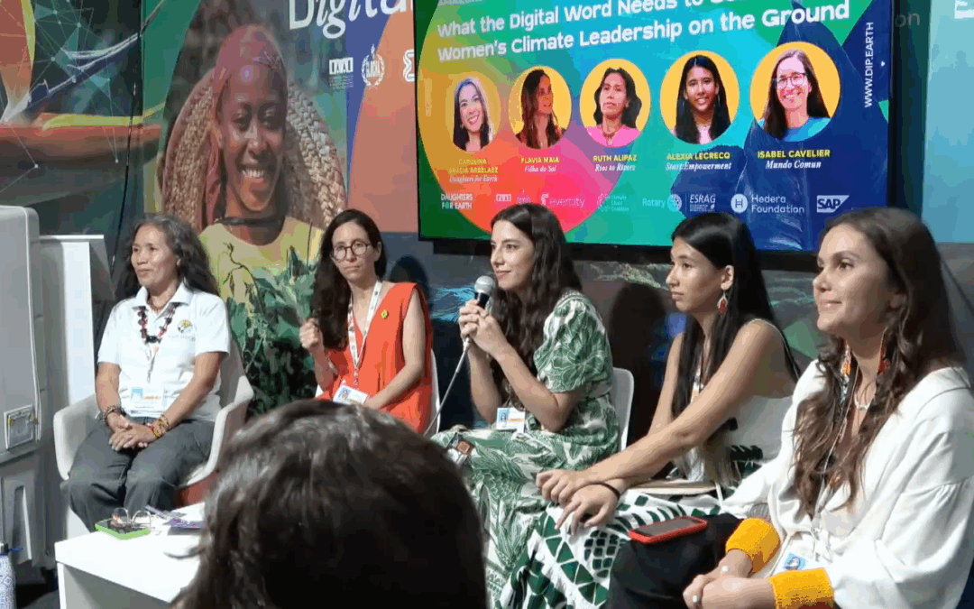 Daughters for Earth continues to tell this story around the world, especially as found in the just-released Impact Study 2025 – Women Weaving the Way Forward: How Women are Tackling the Planetary Crisis. Most recently, Daughters’ own Carolina García Arbeláez brought that story to life alongside at COP30, along with visionary leaders like Ruth Alipaz (Ríos to Rivers), Alexia Leclercq (Start:Empowerment), Isabel Cavelier (Mundo Común), Dr. Flávia Maia (Filha do Sol).